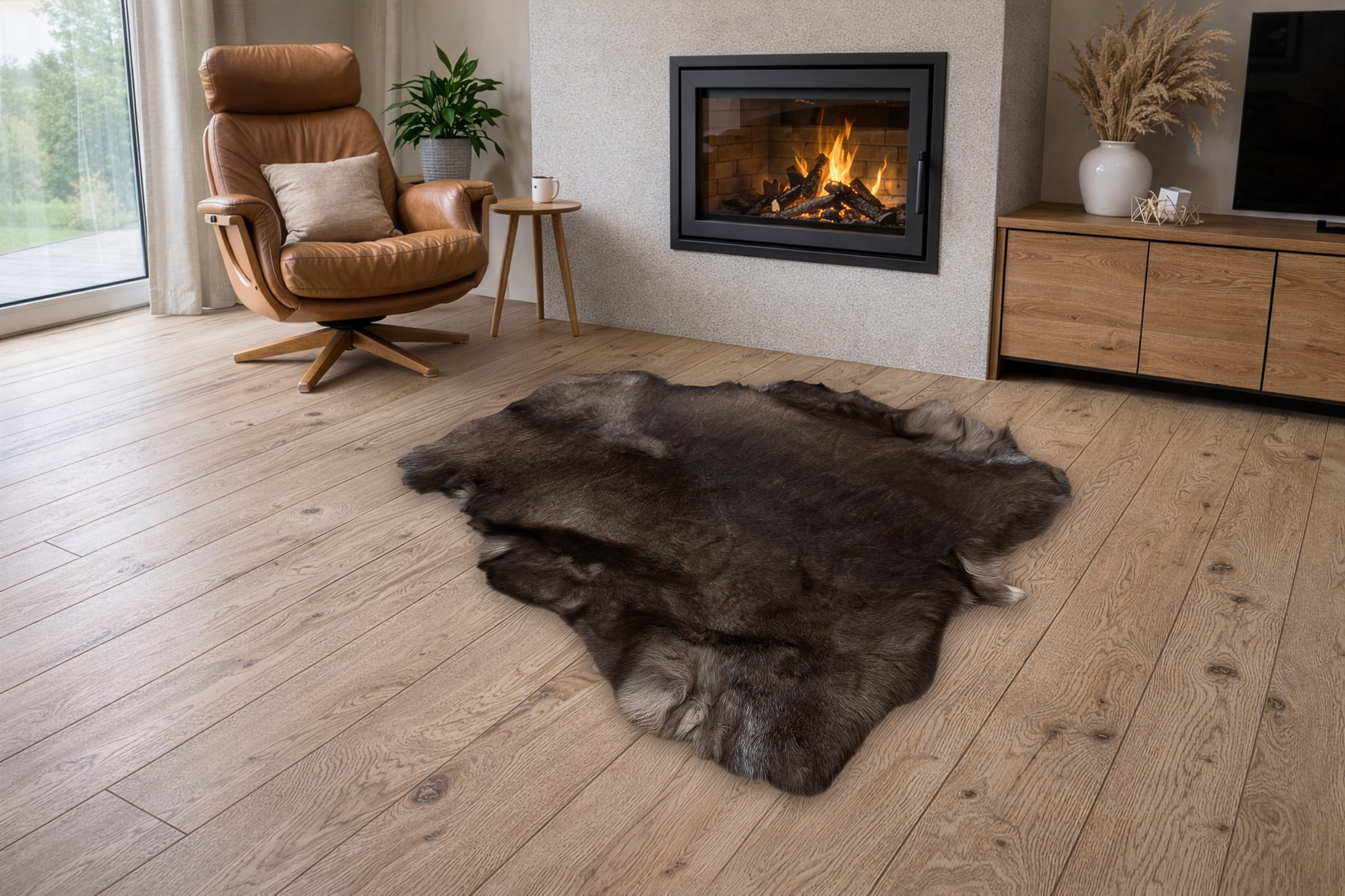 Natural reindeer hide rugs are a distinctive interior feature that instantly adds warmth and gives a space a cosy, luxurious feel. They work beautifully in interiors inspired by Scandinavian, Nordic, boho, japandi, rustic and modern styles, where natural materials and expressive details matter.