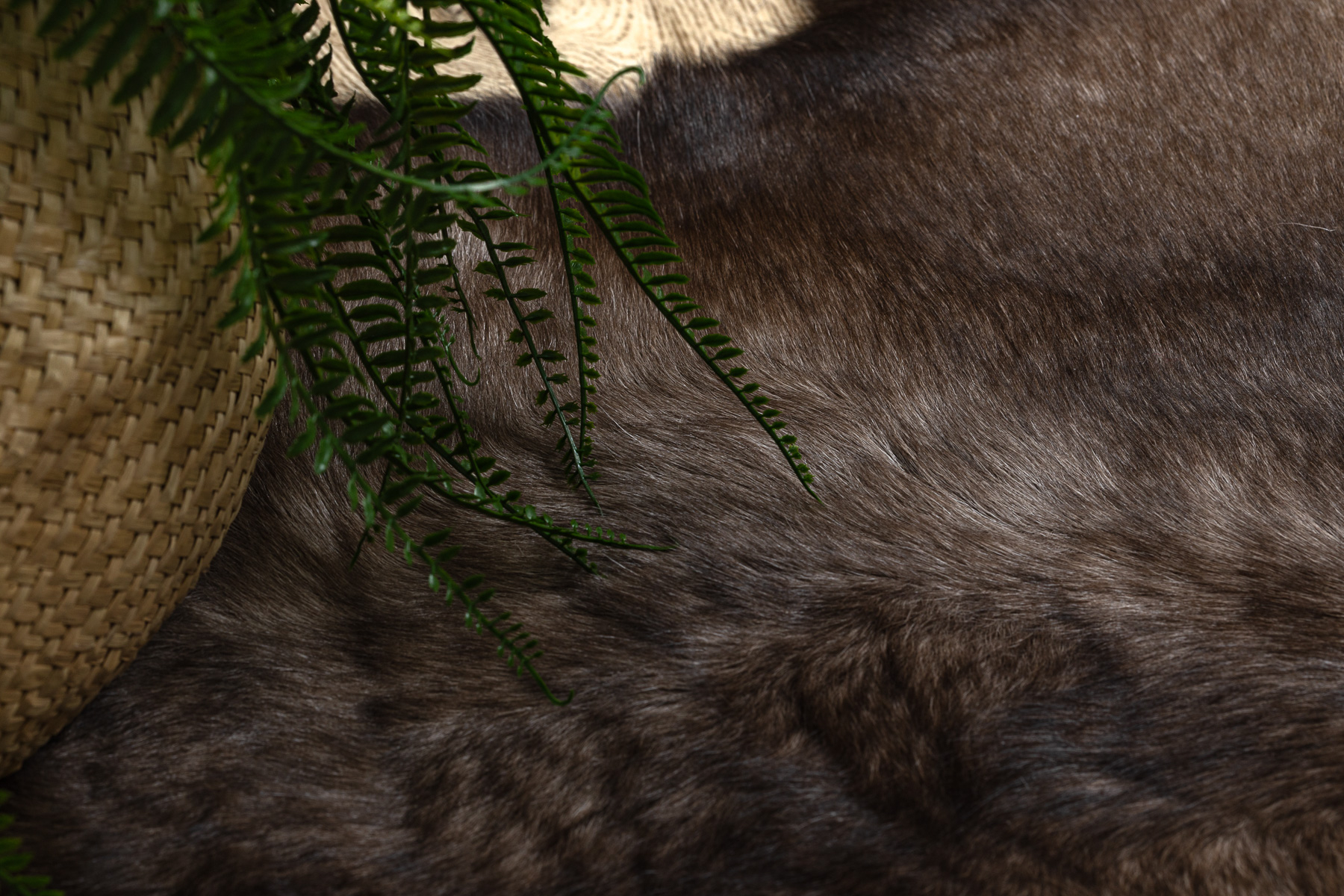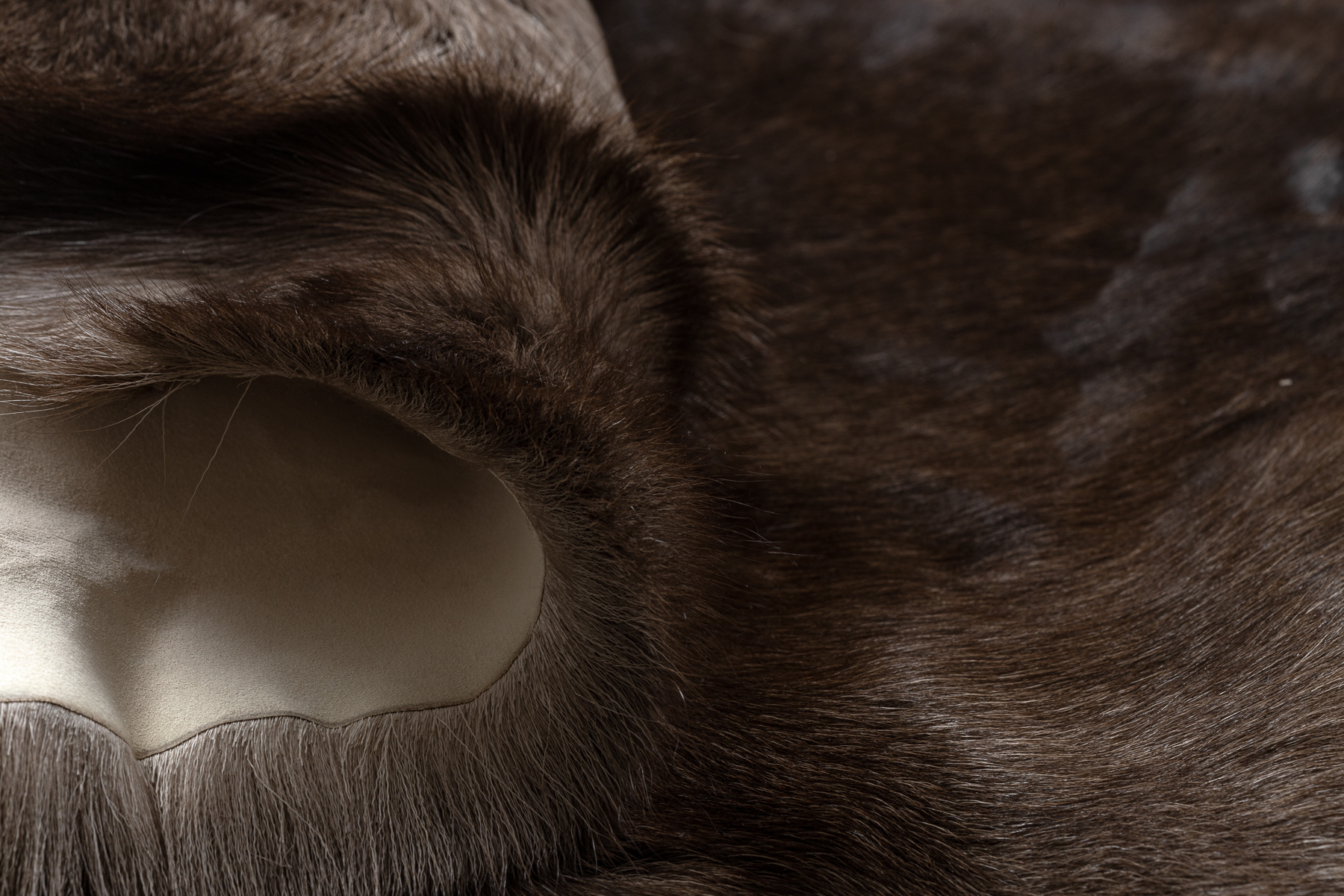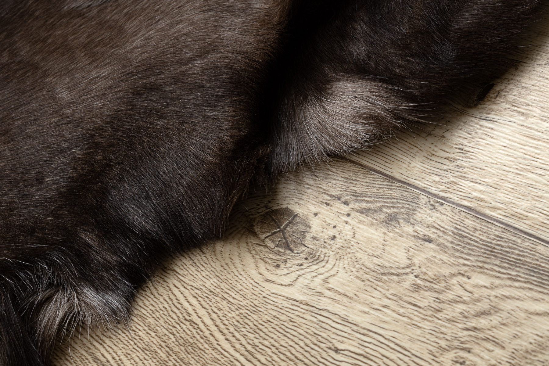 Reindeer hide is a natural and delicate material. Its hair has a tubular structure (hollow inside), which means that with intensive foot traffic it may break and gradually shed — this is a characteristic feature of this type of hide, not a product defect.